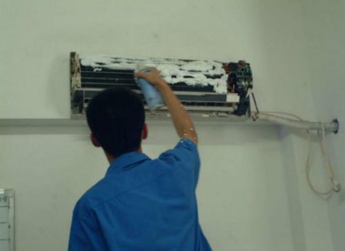 | 新城空调维修师傅给新城用户上门维修清洗空调。 |